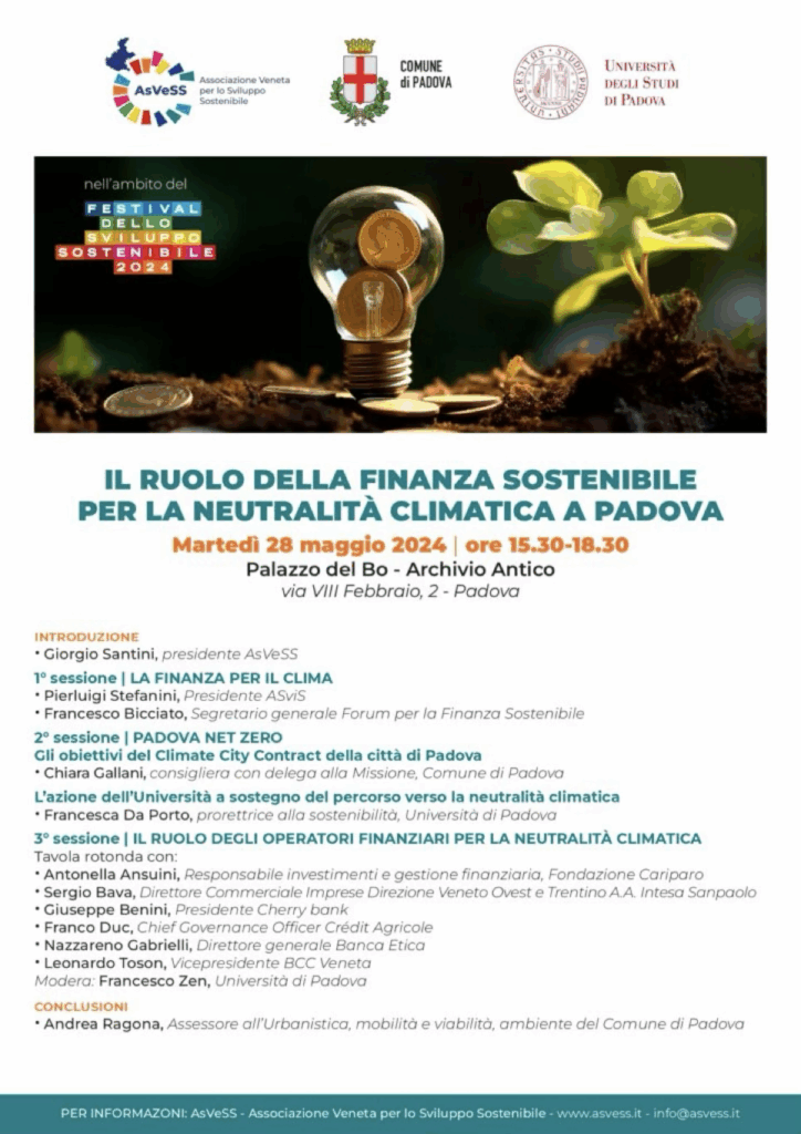 Il ruolo della finanza sostenibile per la neutralità climatica a Padova